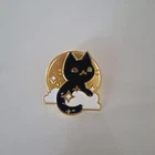 Add a touch of feline grace to your outfit with this stunning lapel hat pin back. The intricate design features black and gold tones that beautifully complement any color scheme. Crafted with high-quality materials, this pinback is durable and long-lasting. Ideal for collectors, this animal-themed pinback is perfect for adding to your collection or for everyday wear. Whether you're a cat lover or simply looking for a unique accessory, this lapel hat pin back is sure to impress. Measures 1"