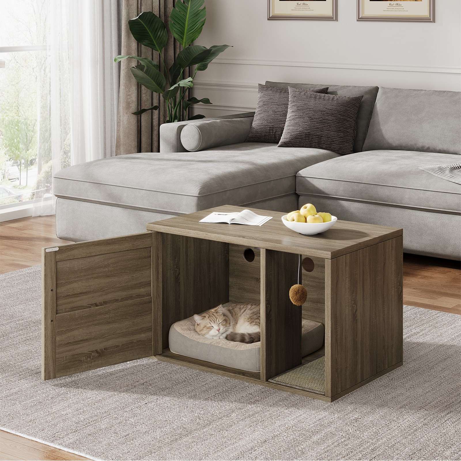 $ 11.09Easy Assembly Cat Litter Box Cabinet 47.2x18.5x19.7in Two Vents Greige Tone