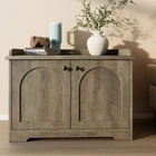 Feature: 1. PET FRIENDLY DESIGN: This cat litter box enclosure provides a private bathroom space for your feline friend. Add a litter box inside and create a cozy, quiet corner with a cat bed and toys, giving your kitty the excellent place for napping and relaxation. 2. ODOR CONTROL: Designed to offer your cat a dedicated area for their needs, this litter box furniture helps suppress unpleasant odors. It fits most litter boxes and keeps your home smelling fresher, while also preventing litter spills and messes. 3. MULTI FUNCTIONAL: This cat house serves dual purposes, not only is it a litter box barrier, but it also functions as a cat house. With its stylish furniture aesthetics, it can easily double as a side table or coffee table next to your sofa, providing a practical place for books, decor, or other items. 4. STURDY AND STABLE: Crafted from high strength boards, this pet box enclosure is both robust and enduring, ensuring safe usage for your pets. Its double cabinet doors allow for easy access when refilling cat food or cleaning up, enhancing convenience for pet owners. 5. COMPREHENSIVE KIT: The kit includes clear instructions, all necessary tools, and hardware for easy assembly. This wooden cat house transforms untidy areas into neat, cozy spaces, providing your cat with a private place to do their business without compromising your home's aesthetic. Specification: Item Type: Cat Litter Box Enclosure Furniture Size: Approx. 80x56x50cm / 31.5x22.05x19.69in Material: Boards Doors: 2 Package List: 13 x Boards 1 x Scratching Pad 13 x Accessories Pack 1 x Instruction Manual Note: