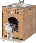 Product description Snughome Cat Litter Box Enclosure with Cat Litter Mat This handwoven rattan cat house not only provides a cosy nook for your pet, but also enhances your home decor with its warm and rustic charm. What' more, its wide range of applications can meet your various needs. This woven rattan cat litter house provides your pet cat with a place that combines aesthetics and privacy. Simple Installation Step Thoughtful Design More Details Soft Eva Material Waterproof/Urine Proof Mat Notch Design Convenient to Clean Exquisite Handwoven Rattan Material