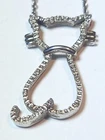 This necklace features a charming cat-shaped pendant made of sterling silver. The pendant is adorned with tiny sparkling diamonds, adding a touch of elegance to the piece. The necklace comes on an attached 18.5" chain and features a lobster closure marked "925 Italy. " This cat necklace is a stylish and whimsical accessory for any cat lover or animal enthusiast looking to add a playful touch to their outfit.