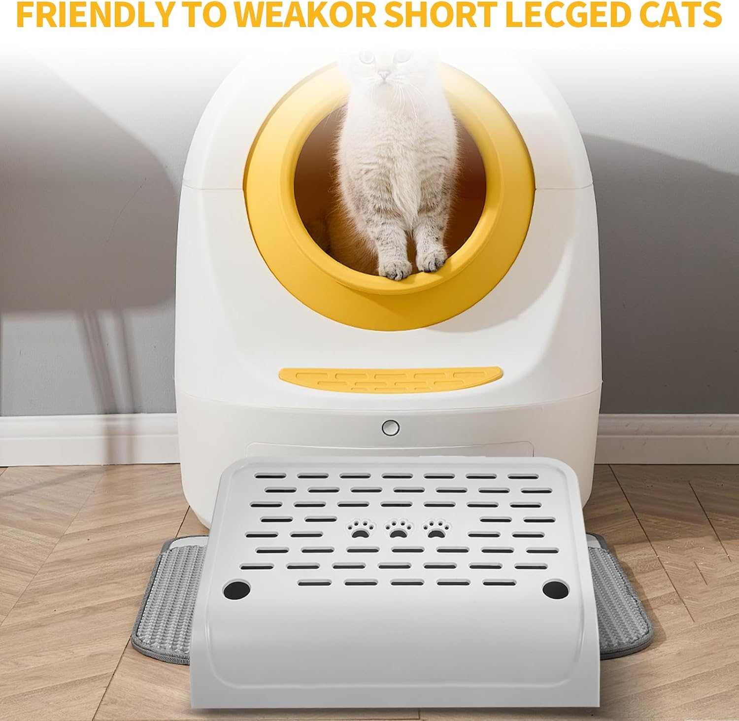 Cat Ramp for Litter Robot, Self Cleaning Cat Litter Box Step with Storage Cat Litter Slide for Cats Step Stool with Filter Function Litter Catcher Tray for Automatic Litter Box 11.8X8.7X3.9In(Gray) Small Size:The dimensions of The cat litter ramp for cat litter robot are 11.8 x 8.7 x 3.9 inches, note that it is smaller in size Litter Collection: The grid on the top of our cat mat for litter box collects the litter as it is carried out, keeping the room clean and tidy. Litter matt for cat holds more litter sand so it would need to be taken care of less frequently, perfect for lazy people. The cat litter box pedal collects cat litter, and the bottom can be pulled out. You need to clean the cat litter box regularly Quality Material: The cat litter ramp for cat litter robot is made of high quality stainless steel material, so you don't have to worry about your cat scratching and damaging it. The cat litter slide can be rinsed directly with water, and it keeps the area around the litter box clean and tidy Fits Most Litter Boxes: The cat litter catcher fits most sizes of litter boxes. This litter box cleaner is not only a must-have accessory for an automatic cat litter box, but can also be used as a mat for cats to rest or play on in a variety of scenarios Easy Access : The litter box mat have a gentle slope that makes it easy for most cats to get in and out of the litter box. With the inside of the kitty litter mat being hollow, there will no longer be nowhere to store items such as litter bags, cat food cans and cleaning brushes Guaranteed Satisfaction: If you don't want to see your cat bring out tons of litter from the robot litter box every time, then try our cat stairs. We are sure that this cat litter box foot pedal can solve your problem perfectly Product description 8.82 inches x 13.07 inches x 3.46 inches. Weight: 1.3 lb Style simplicity Item Dimensions LxWxH 12.2 x 8.3 x 3.5 inches Color Gray Product Dimensions 12.2"L x 8.3"W x 3.5"H Material Polyester Load Capacity 15 Pounds Item Weight 1.3 Pounds Target Audience Keyword Cats Size Medium Specific Uses for Product Indoor Item Package Dimensions L x W x H 13.07 x 8.82 x 3.46 inches Number of Items 1