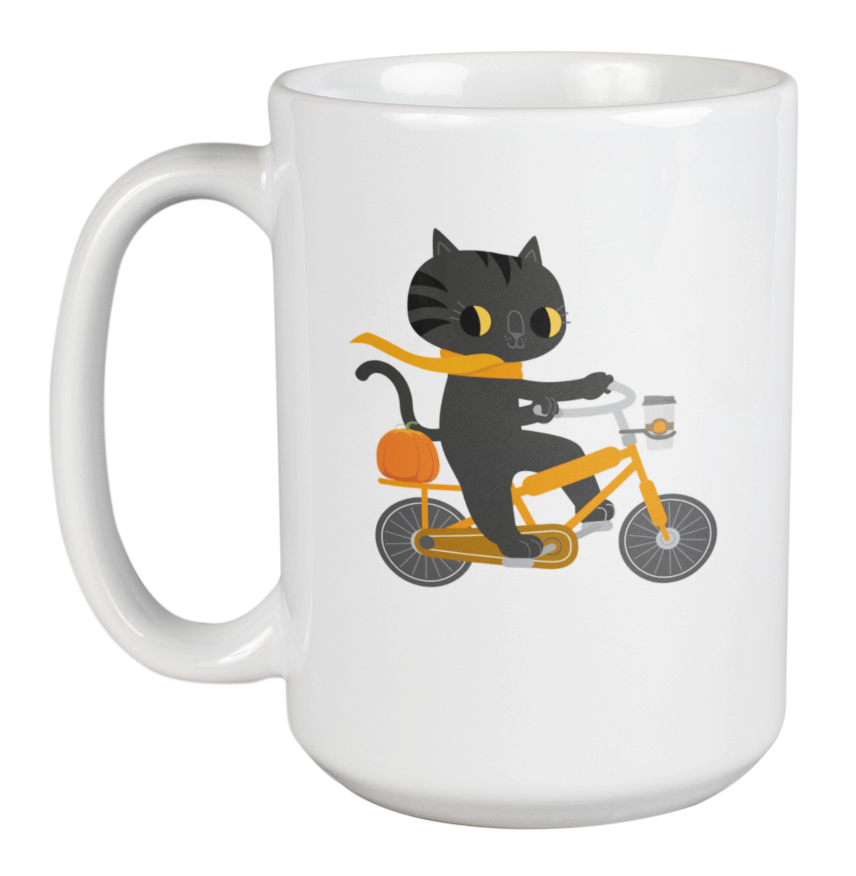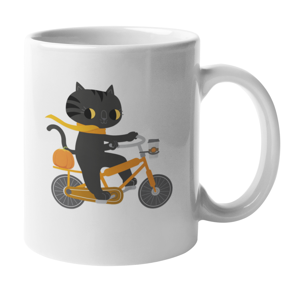 Cat Riding on a Bicycle Halloween Coffee & Tea Mug