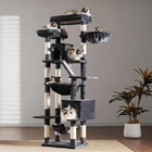Introducing the Heybly Cat Tree Tower HCT034 – the perfect cat furniture for indoor cats of all sizes. Our tall cat tree stands at 70 inches with 2 large platforms, 2 cozy cat beds, 2 hanging baskets, 1 comfortable hammock, and a scratching post. The cute cat tree is easy to assemble and designed for large cats, making it a great addition to cat condos for indoor cats. Made with durable materials, this modern cat tree is built to last. Give your cat the gift of playtime with this cat tower for large cats. Specifications: Material: Particleboard, Plush, Sisal Product Size: 38.6"L x 17.7"W x 70.1"H Product Weight: 43.8 lb Package Contents: 1 x Cat Tree 1 x Anti-Tip Kit 1 x Accessory Kit 1 x Instructions Heybly Notes: If your fur friend starts to chew or eat the pompom or elastic band, please remove the toys and keep them out of the reach of your fur friend for a while. If the cat cave is scratched and damaged by naughty paws, please repair or replace it before continued use to avoid the risk of injury to your fur friend. Because cats love to jump and play, please attach the cat tower to the wall with the anti-tip kit included for safe use. Multi-level cat tree tower designed to satisfy your feline's natural instincts and activity needs with its 2 spacious cat caves, 2 perches, 2 hanging beds, 1 basket, and 1 scratching board. Easy to assemble and sturdy cat condo made with universal screws and a simple structure, requiring only one person and an included Allen hex key to set it up. Provides endless entertainment and encourages physical activity with 2 hanging pompoms with bells and 2 spare silent pompoms, perfect for multi-cat households. Safe and secure cat tree for large cats supported by a strong structure and secured with an anti-tip kit, accommodating up to 5 cats (max. 11 lb each) with peace of mind. Easy-to-clean cat furniture that makes fur, dirt, crumbs, and other debris no problem thanks to its easily-wiped surface, giving cat owners the convenience they crave.