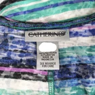 The Catherines Plus Striped Layers Tank Top Blouse in size 0X is a versatile and stylish addition to any wardrobe. This sleeveless blouse features a classic crew neck and a flattering waist length hem. Made from 78% polyester and 22% rayon, this knit blouse is easy to care for with machine wash cold instructions. Perfect for various occasions from casual to formal, this multicolor top is adorned with a tropical theme, making it a great choice for all seasons. Designed for plus size women, this blouse from Catherines offers a comfortable fit with a touch of elegance. Measurements Bust: 44" Length: 27"