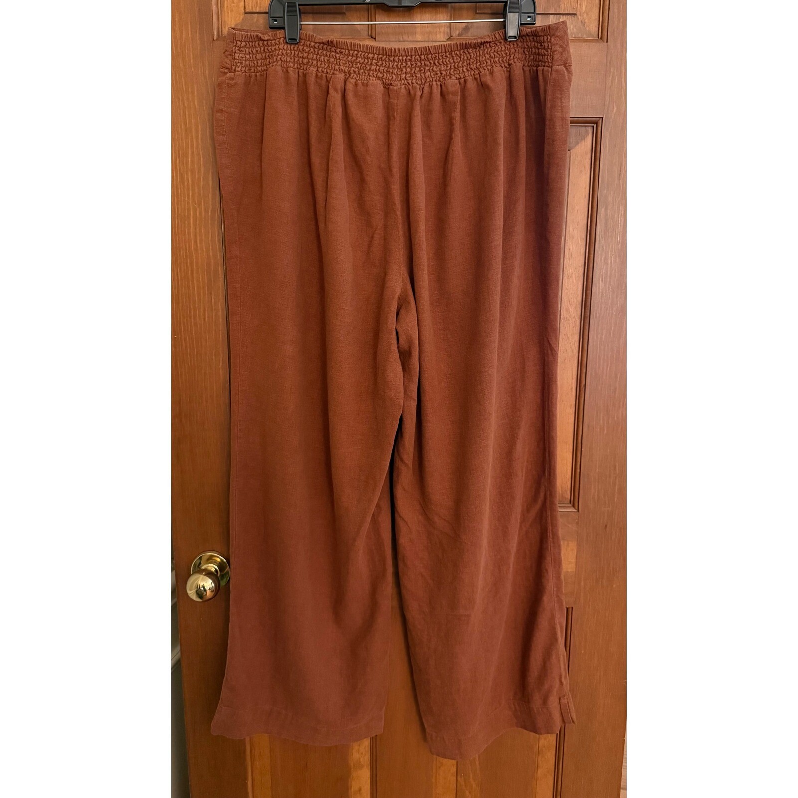 Cato Wide-Leg Linen Blend Pants Womens 18-20W Rust Lightweight Comfort Waist Condition: Excellent: lightly used; free of rips, tears or holes. Additional signs of normal wear may be present. Please see all photos. Size: 18-20W - 55% linen; 45% rayon (Measurements in photos) Ships FAST & AFFORDABLE - next business day. - All Offers welcome - SKU: 3028