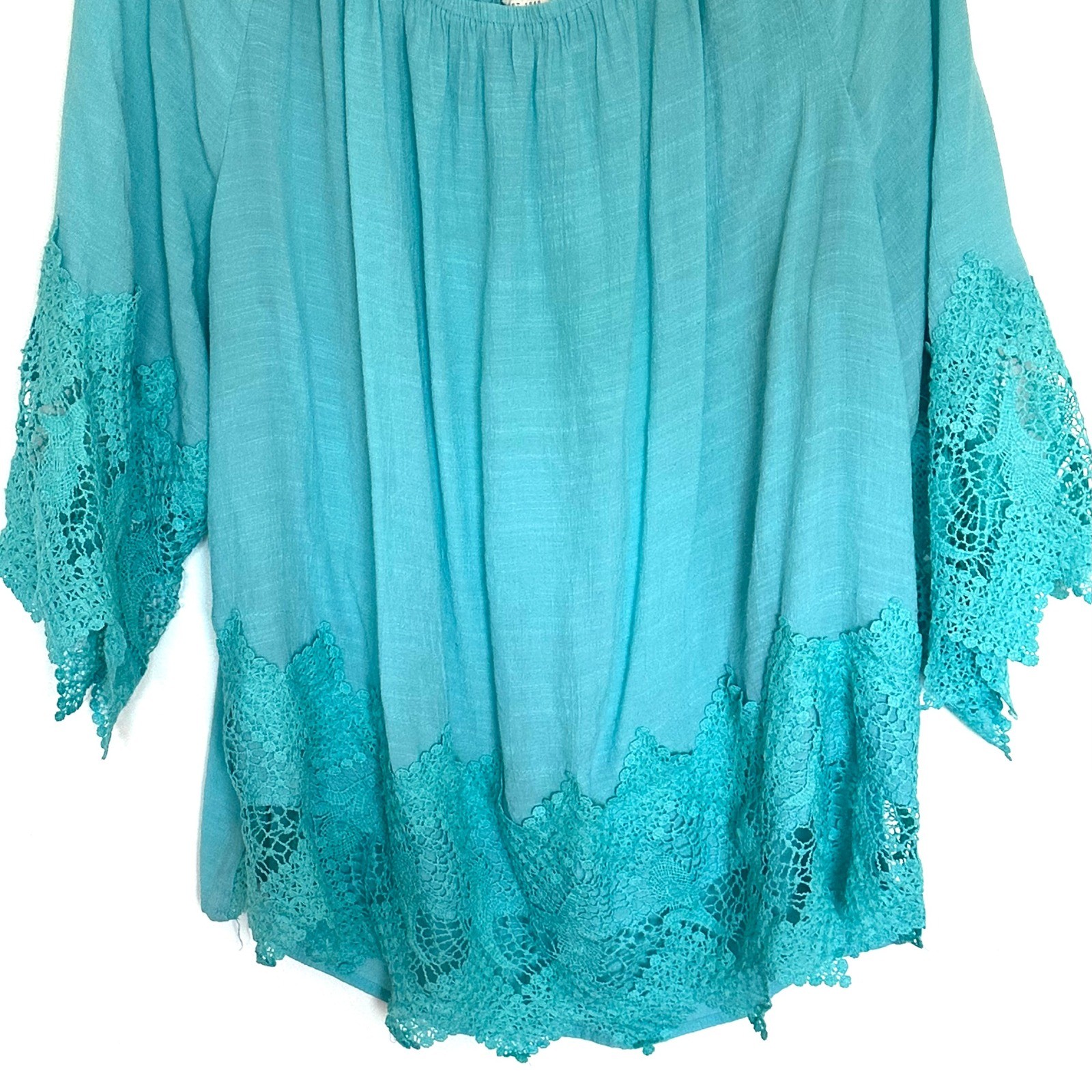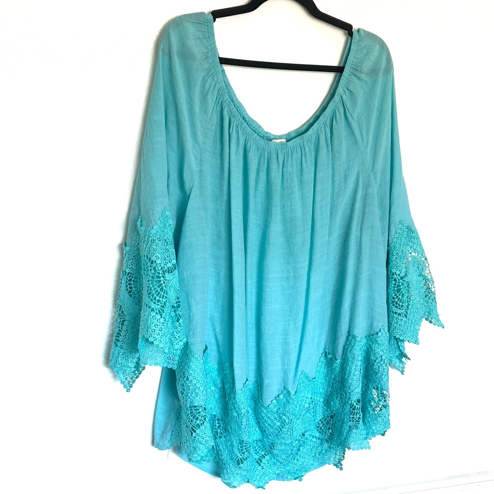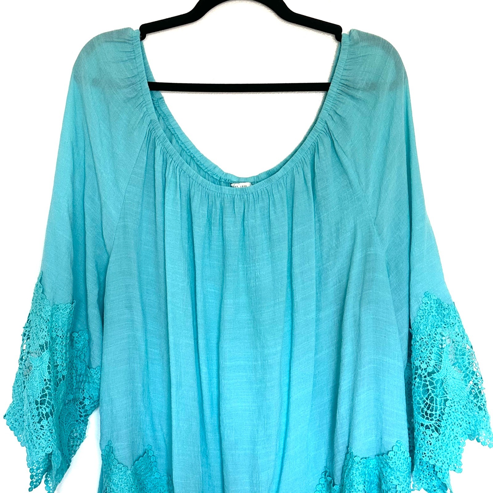 $ 15.32NWT Bloomchic Ivory Eyelet Lace Twist Front Tunic Blouse Size 26 Boho Style