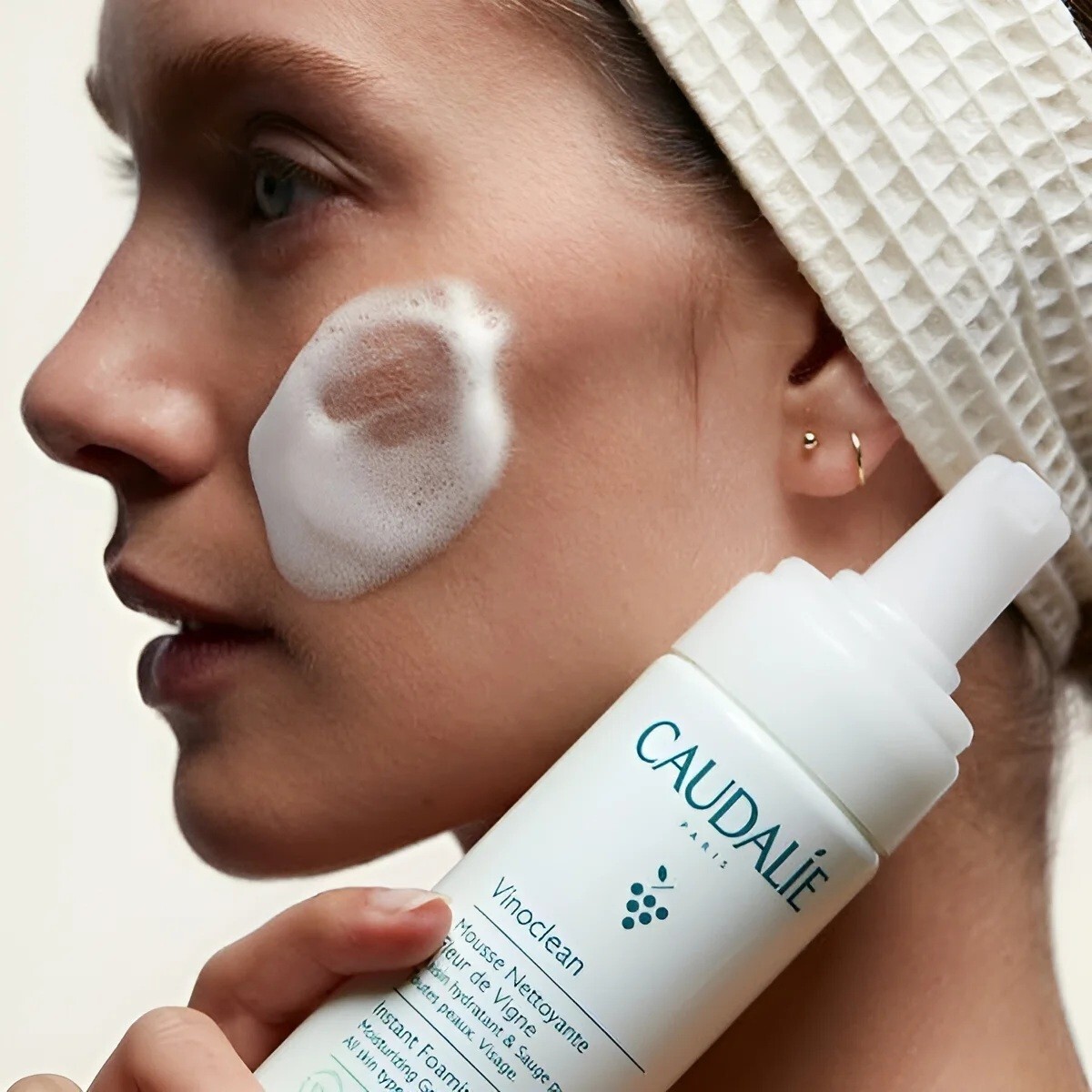 Caudalie Vinoclean Instant Foaming Cleanser ✨ Product Overview ✨ Caudalie Vinoclean Instant Foaming Cleanser is a 5 oz / 150 ml cleanser. It features a foam with moisturising grape and purifying sage. This cleanser gently cleanses and purifies, providing radiance and comfort. Perfect for those seeking a soothing cleansing experience. Key Benefits Moisturising Grape : Nourishes the skin. Purifying Sage : Helps in cleansing. Radiance & Comfort : Enhances skin's appearance and feel. Product Details The cleanser comes in a 150 ml / 5 fl. oz bottle. It's designed for gentle cleansing, making it ideal for daily use. The product image includes grapes and sage, emphasizing its natural ingredients. Trust Caudalie for a cleansing experience that cares for your skin.