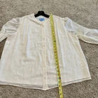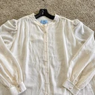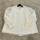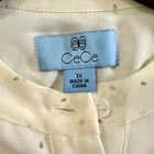 The CeCe Women's Long Sleeve Blouse in Plus 1X is a stylish and versatile top perfect for casual occasions. This ivory blouse features a playful rose gold polka dot pattern , adding a touch of metallic flair. The sheer, lined design offers a fashionable and feminine look, while the front buttons and mock neck neckline provide comfort and ease of wear. Made from polyester, this blouse is machine washable and suitable for all seasons in and out of the office. Perfect for career wear or everyday business attire, this blouse combines classic style with modern accents. Measurements: Pit to pit: 24” Length (shoulder to hem): Pit to pit: