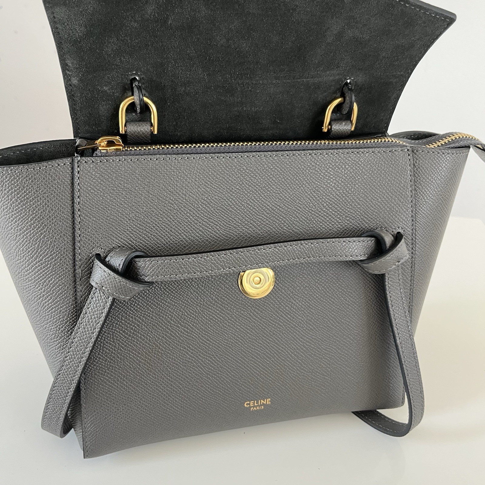 Celine Belt Bag Textured Gray Leather Nano, 100% Authentic. Condition is Pre-owned. Shipped with Expedited Shipping.
