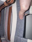 Celine Small Cabas Thais In Striped Textile And Calfskin. The Small Cabas Thais by Celine is a stylish shoulder bag crafted from striped textile with calfskin trimmings and features a textile lining. The bag offers one main compartment, an inner flat pocket, and two outer flat pockets on the sides