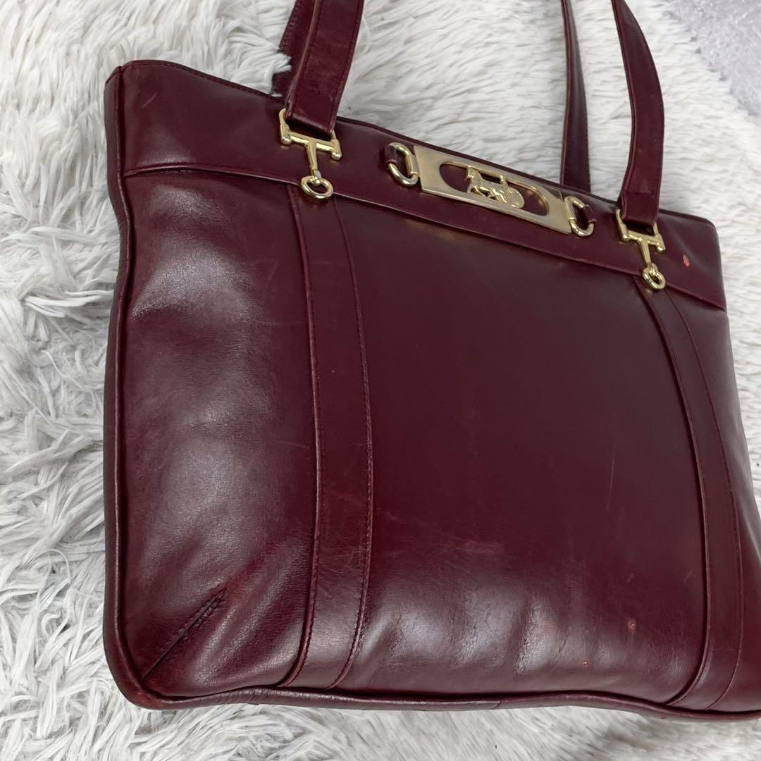 Celine Leather Tote Bag, Carriage Fittings, Logo Embossed Zipper, Bordeaux Key Features - **Product Description:** CELINE vintage leather tote bag featuring iconic Trionf logo hardware, brand logo embossing, and a classic design. - **Detailed Features:** Color: Bordeaux Red Material: Genuine leather Size: Height 26cm, Width 33cm, Depth 5cm, Handle 32cm Design: Horse-drawn carriage metal fittings, zipper closure, logo embossing, logo plate - **Condition:** Shows minor signs of use and scratches but remains in good condition for continued use. - **Item Specifics:** Brand: CELINE Type: Tote Bag Material: Leather Color: Bordeaux Red Size: 26cm x 33cm x 5cm Handle Length: 32cm Condition: Used, minor signs of wear Specifications Brand Celine Country Japan Product Description Description Thank you for your interest. This item is not new, but a used item that was given away. Please check the photos for the condition of the item. Please understand that the condition of the item is subjective and the standard of evaluation and feeling may vary from person to person, so please be aware that this is a used item before bidding. Please check the photos for the condition of the item, such as scratches and stains. To prevent problems, please feel free to contact us if you have any questions about the size or other details of the item. We will be happy to adjust the price. We will do our best to ship your order as soon as possible. We will do our best to ship as soon as possible, but there may be delays during the busy harvest season. Remarks All the products we sell are obtained and sold by pawn shops that are authorized brands, so all the products we handle have been authenticated to meet our strict standards for authenticity, so please buy with confidence. Payment Supports managed payments Please pay within 5 days after auction is finished. About Us We are located in Japan. It's our pleasure to make you happy by proposing our recommend item. If you have any questions or request about items, please feel free to ask us. International Buyers - Please Note: -Importduties, taxes, and charges are not included in the item price or shipping charges. These charges are the buyer's responsibility. -Please check with your country's customs office to determine what these additional costs will be prior to bidding/buying. -These charges are normally collected by the delivering freight (shipping) company or when you pick the item up - do not confuse them for additional shipping charges. -We do not mark merchandise values below value or mark items as - gifts - The US and International government regulations prohibit such behavior. Thank you for your understanding