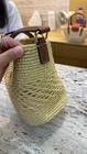 This Celine bucket bag is the perfect summer staple—lightweight yet sturdy with gorgeous hand-woven raffia and luxurious calfskin trim. The gold Triomphe logo adds a chic touch, and the adjustable strap makes it versatile for any occasion. Roomy enough for essentials but still sleek, the open lace detailing gives it effortless elegance. A must-have for effortless style!