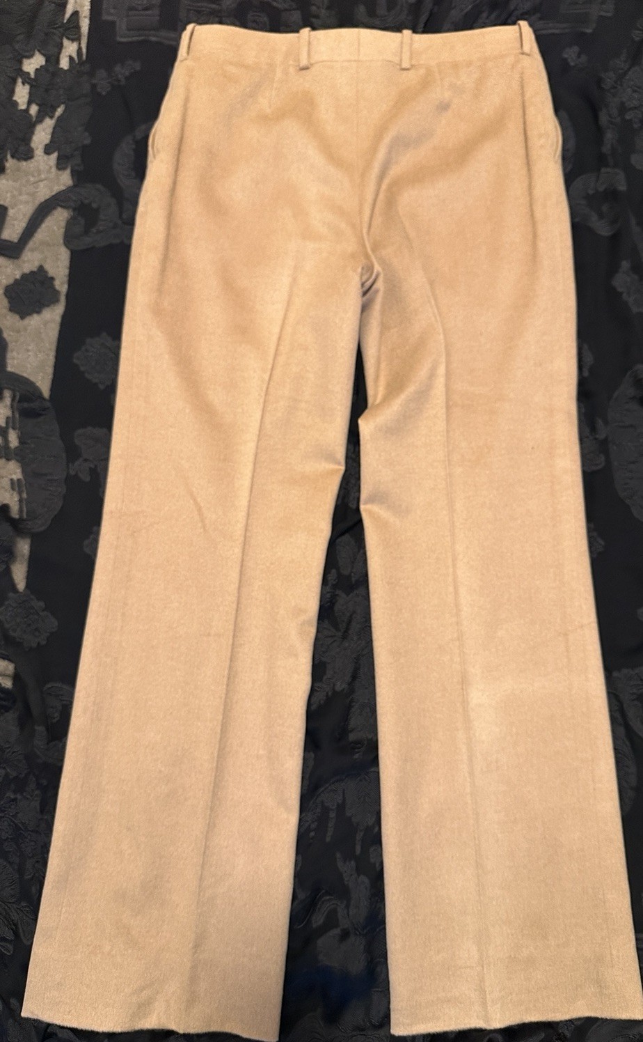 There is a little stain on the trouser leg. Try having it clean at a dry cleaner's. see the pictures please