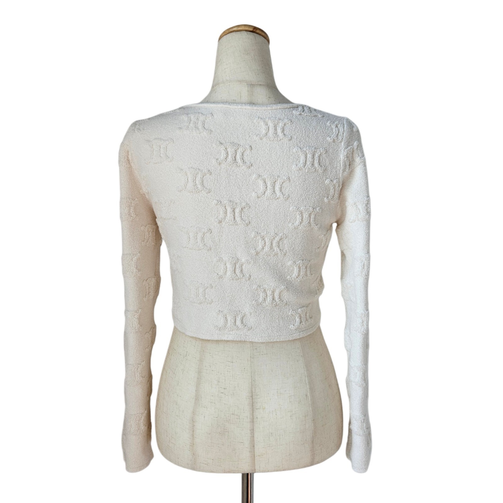 Celine White Triomphe Logo Print Long Sleeve Crop Top Attributes Material: 68% cotton, 32% polyamide Color: White Size: M Condition: Very Good