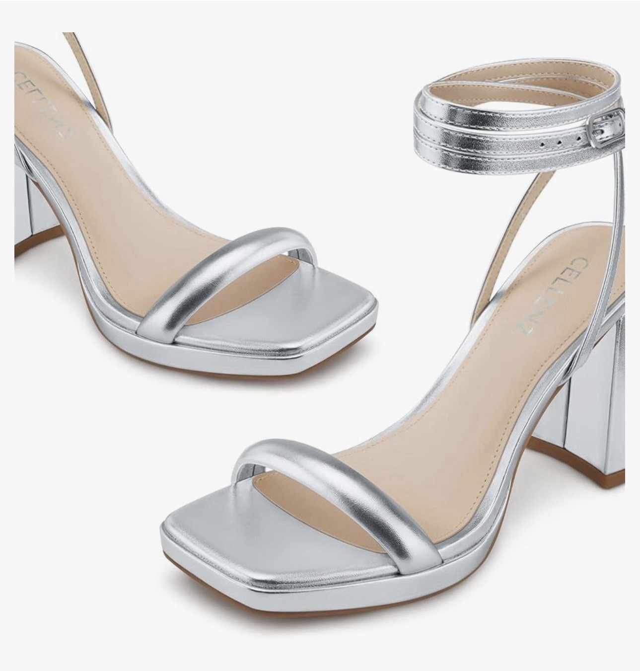 Cellenz Women’s Silver Chunky Platform Heels Square Open Toe Size 7 Party, wedding, prom Dressy and sexy Great condition open box, look to be brand new Some pictures are for reference only