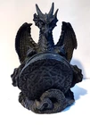 Celtic Dragon Holder and Coaster Set 6ct Coasters * Heavy Weight Resin Dragon is 8" x 6" Coasters 3.5" Diameter Pre-Owned Complete Tiny Chip on Dragons Horn