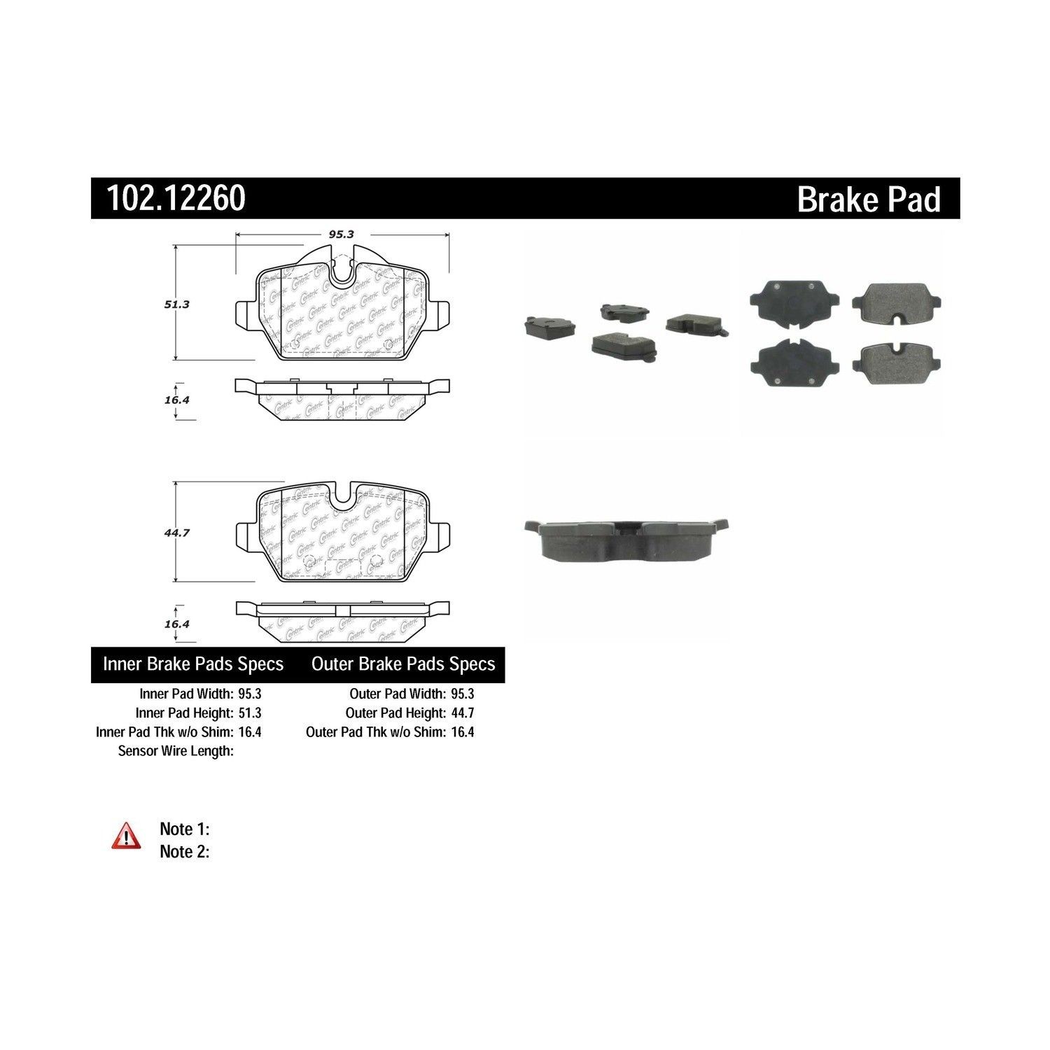 Centric Parts 102.12260 C-Tek Semi-Metallic Brake Pads with Shims Centric Parts 102.12260 Shimmed To Eliminate Noise And Vibration. Formulated For Reduced Noise. Semi-Metallic Compounds. Post Cured For Consistent Performance Throughout The Service Life Of The Brake Pad. 100% Asbestos And Copper Free Formulas. Disc Brake Pad Set FEATURES: Shimmed to eliminate noise and vibration. Formulated for reduced noise. Semi-Metallic compounds. Post cured for consistent performance throughout the service life of the brake pad. 100% Asbestos and Copper free formulas. SPECIFICATIONS: Friction Material Attachment: Integrally Molded Friction Material Composition: Semi-Metallic Inner Pad Height: 51.300 MM Inner Pad Overall Thickness: 16.400 MM Inner Pad Width: 95.300 MM Location: Rear Mounting Hardware Included: No Outer Pad Height: 44.700 MM Outer Pad Overall Thickness: 16.400 MM Outer Pad Width: 95.300 MM Pad Quantity: 4 Pad Shims Included: Yes Pad Wear Sensor Included: No Prepared For Pad Wear Sensor: Yes Centric Parts offers a full line of C-Tek standard replacement brake and clutch parts for import and domestic vehicles. C-Tek components provide exceptional quality and value. Utilizing world-wide manufacturing sources allows Centric Parts to provide the highest quality replacement parts while maintaining value. Fits what vehicles: 2011 BMW 120i, 2013-2016 Mini Cooper Countryman, 2013-2016 Mini Cooper Paceman We carry performance and replacement parts, along with every consumer item you’ll ever need. Take advantage of our huge distribution network in the United States and Canada, we're able to ship direct to you, so we can get your order into your hands faster than the competition. Our goal is to exceed your expectations. And we’ve built a system to do just that. Our company combines hard-core drag racers and auto enthusiasts with tech-savvy engineers and developers — all car lovers — to create a webstore that gives you an unmatched shopping experience — and we deliver it fast. Very fast. Unlike traditional brick-and-mortar retail outlets, our inventory isn’t limited to what we can pack into a storefront or what a counter clerk may be able to find. While they can only offer you hundreds of items, you’re just a few clicks away from millions of parts when you shop PartsHawk — all in stock and ready to ship. And since we don’t own any of those expensive stores, we can offer our parts for less, and that saves you money on every part, every day. A better shopping experience, for every product for every car, whenever you order. SHIPPING POLICY 99% of orders placed by 2pm Eastern Standard time will be shipped same day All orders are immediately sent to our distribution centers which may impact your ability to cancel the order once it's placed Many parts are stocked in more than one warehouse location. As a result your order may ship from a location other than the location shown in the listing. In most cases the shipping location will be closer to delivery address as we always try to ship from the closest warehouse to minimize transit times. In some circumstances intraday sales and other inventory changes may result in your item being shipped from a location further from your delivery address. Orders over $200.00 may be shipped signature required at no additional cost to you. We recommend shipping to a location where someone will be there to receive the package RETURN POLICY PartsHawk stands behind every item we sell. Occasionally, there may be an issue with your item or your order and we will do our best to ensure you are 100% satisfied. We offer a 30 day exchange or refund policy on all orders. Within 30 days or receipt of your order you may request a return for either an exchange or a refund. All product returns must be in the original packaging, have not been used, installed or damaged due to improper installation. All parts, hardware, documents and instructions must be included in the returns. PartsHawk will also support the manufacture’s warranty for all item during the warranty period offered by the manufacturer. Carriers and Ship Methods : We ship most packages to the contiguous 48 states using USPS, UPS or FedEx. Upon shipping we determine the closest distribution center to you and the quickest method. Note : We do not accept returns for Car Computers, Performance tuners or Vehicle Programmers. If the product is defective we will exchange the unit for the exact item. No new returns on these products. Large Parcel Items : For large items (bumpers, side steps, bed covers, etc.), these may be shipped through a truck delivery service. If you are having issues tracking your package please contact us so we can assist you. Return Check List Original packaging PartsHawk RMA (return merchandise authorization) form All accessories & hardware Any documents and instructions GLOBAL SHIPPING PROGRAM How does shipping work? Placing an order outside the US is easy! In fact, eBay handles the entire transaction for you once we have shipped the product to their warehouse in Kentucky. Once the order has shipped you will receive a tracking number from our warehouse to Kentucky and then another tracking number from Kentucky to you. Additional Charges and Fees Additional shipping, duties and taxes will be calculated by eBay during check out. Outside the US? Don't worry, PartsHawk is currently shipping to over 100 countries Check the Shipping and Payments section above to see if this item can be shipped to you. What if my order shows shipped but the package is not moving? At times there is a delay in the carrier’s tracking for updates. Please allow up to 24 hours for your tracking to update. If you still do not see any movement, please contact our Customer Service Department and we will be happy to assist. What if I am not available when the carrier tries to deliver? If there is no response when the package arrives, the driver may leave the package nearest to the street or make a second delivery attem