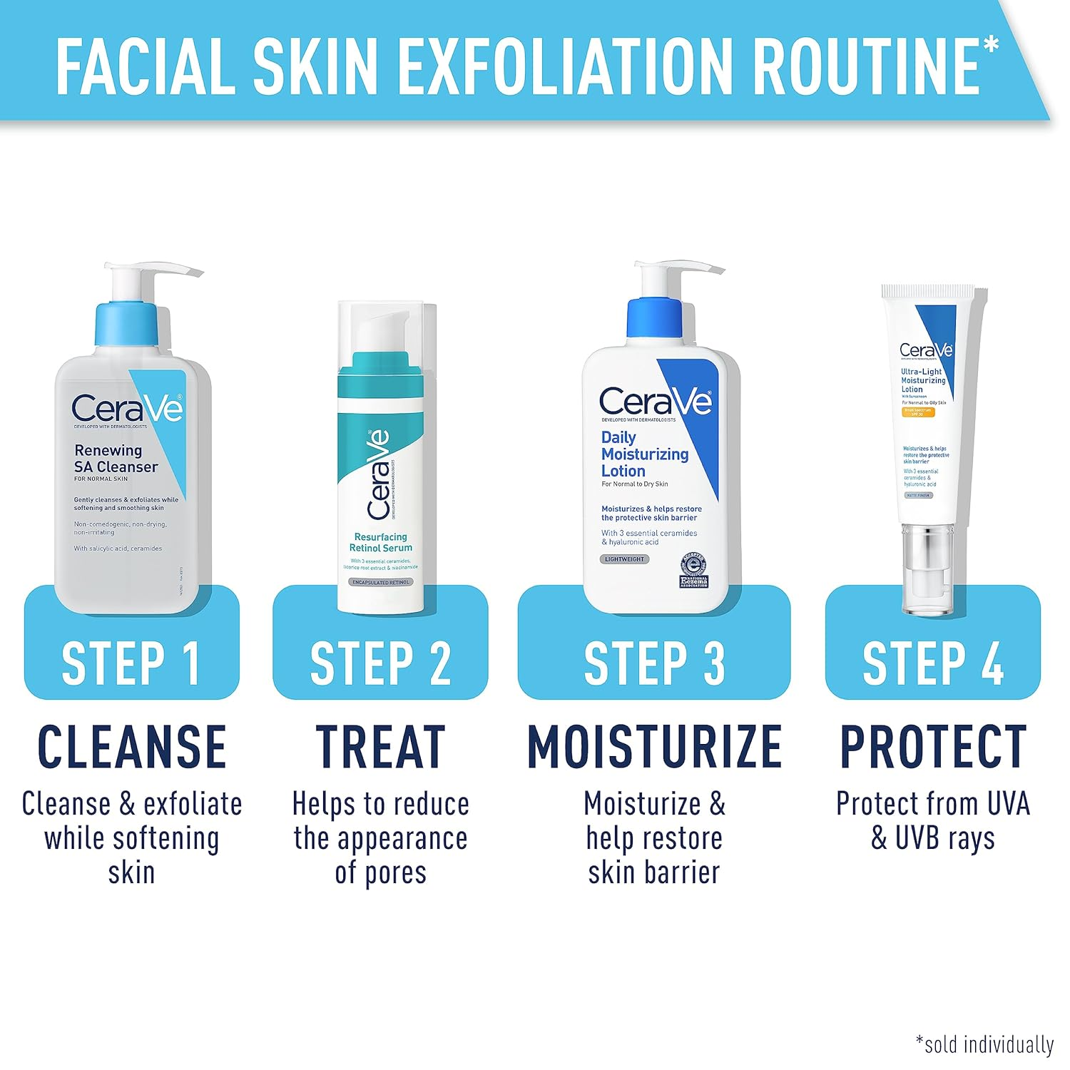 [ EXFOLIATING FACE WASH ] Salicylic acid, a beta hydroxy acid (BHA), serves as a gentle facial exfoliator, removing dead skin cells and enhancing radiance. This salicylic acid face wash is less abrasive than traditional exfoliating cleansers like scrubs [ FOAMING FACIAL CLEANSER ] This face cleanser for women & men transforms from a gel to a rich foaming cleanser upon lathering. Made with hyaluronic acid, niacinamide, and vitamin D, it cleanses and hydrates without over drying the skin [ RENEWING & NOURISHING ] This exfoliating cleanser also aids those with psoriasis. It exfoliates while providing relief to various skin types, including dry and rough skin [ 3 ESSENTIAL CERAMIDES ] All CeraVe products are formulated with three essential ceramides (1, 3, 6-II), these facial skin care products help maintain the skin's natural barrier, protecting against moisture loss and external irritants [ DEVELOPED WITH DERMATOLOGISTS ] CeraVe Skincare is developed with dermatologists and has products suitable for dry skin; sensitive skin; oily skin; acne-prone; and more. FSA Eligible & HSA Eligible Developed with dermatologists, CeraVe Renewing SA Cleanser is a gentle face cleanser that effectively exfoliates and detoxifies, removing dirt and oil without drying the skin. This foaming face wash is free from harsh exfoliants like beads or grains, ensuring a gentle cleanse suitable for face and body use, including on acne-prone skin. Its non-comedogenic, fragrance-free formula is designed to be gentle and non-irritating. Salicylic acid exfoliate for face helps to smooth and soften the skin by removing dead skin cells. Free from harsh particles, this gentle cleanser for skin, making it ideal for sensitive skin types. It transforms into a foaming gel that cleanses while being gentle on the skin. Hyaluronic acid attracts moisture to the skin, while Vitamin D provides antioxidant protection. Ceramides help restore and maintain the skin’s natural barrier, crucial for overall skin health. Niacinamide aids in calming the skin, making this cleanser suitable for daily use. This face wash for women is designed to meet the needs of various skin types, ensuring effective cleansing and exfoliation while maintaining skin health and moisture. •Non-comedogenic •Fragrance-free •Gentle, non-irritating formula Key Ingredients: •Salicylic Acid: Exfoliates for soft, smooth skin •Vitamin D: Provides antioxidant protection •Ceramides: Essential for healthy skin, ceramides help restore and maintain the skin’s natural barrier •Hyaluronic acid: This ingredient attracts hydration to the skin’s surface and helps the skin retain moisture •Niacinamide: Helps calm skin.