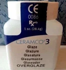 Dentsply Ceramco3 Glaze Powder Bottle of 28.4gm 1oz. OVERGLAZE Packaging :- 28.4gm Bottle It is a complete system of porcelain of fine grain on metal that combines the highest aesthetic properties with a great ease of modeling and high thermal stability. All the components of the system possess the fluorescence of the natural dentition Ceramco3 can be used in simple crowns and bridges on metallic structure. Ceramco3 is compatible with precious and non-precious alloys, Ceramco3 resists discoloration caused by silver-containing alloys, Ceramco dentures are ideal when space is limited, they simplify internal color changes and are generally helpful. They can be used pure or mixed with the dentin modifiers. Ceramco3 porcelain system provides a customized firing process that reduces remakes and increases laboratory profitability and productivity. Images are for Illustration Purpose Only Please Give us Positive Feedback for Our Services . Thankyou for Buying with us . Have a nice day . DISCLAIMER:- The sale of this item may be subject to regulation by the U.S. Food and Drug Administration and state and local regulatory agencies. If so, please not bid on this item unless you are an authorized purchaser. If the item is subject to FDA regulation, I will verify your status as an authorized purchaser of this item before shipping of the item.