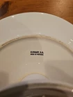 Add a touch of elegance to your dessert table with this beautiful white ceramic cake stand from Ceriart S.A. Made in Portugal, this round stand measures 12 inches in diameter and 4 inches in height, perfect for showcasing your favorite cakes and pastries. The stand features a beaded edge design and is solid in pattern, making it a great addition to any occasion, whether it's a wedding, birthday, or just a regular Sunday afternoon tea. Small chip underneath but does not effect look or use