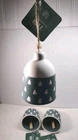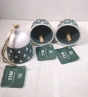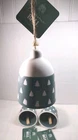 New beautiful Christmas bells ceramic with wood little charms inside green with white Christmas trees so cute with burlap hanging string. No chips No Cracks