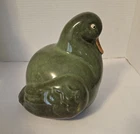 Ceramic Chubby Green Duck Bird Statue 8" Stamped Shiny Glaze Home Decor x146-1