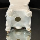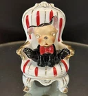 Ceramic Puppy Dog in Striped Chair Rhinestone Eyes Figurine Made In Japan MCM