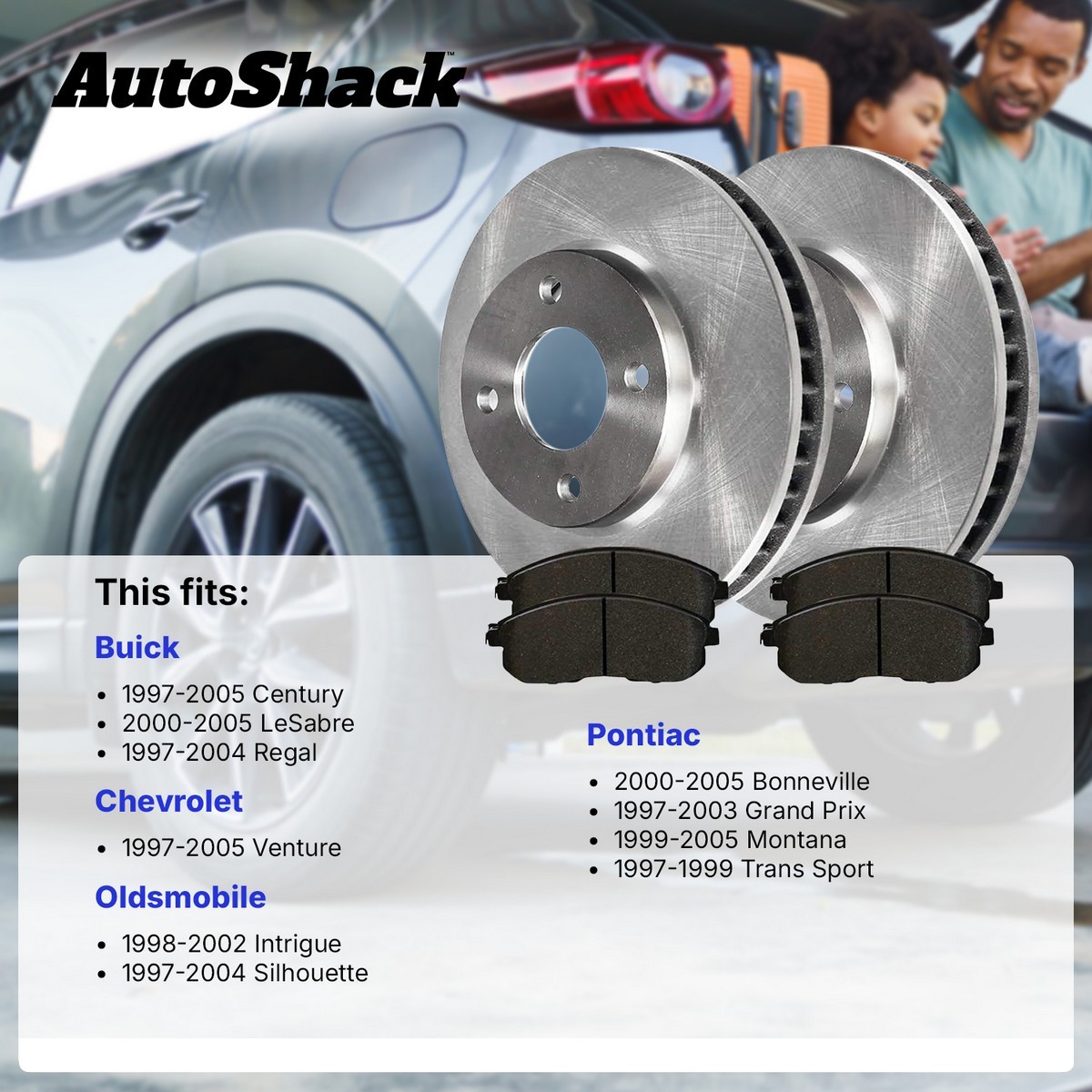 Front Brake Rotors Ceramic Pads for Buick Century Regal Chevy Venture 3.8L Customer Service Returns Shipping Information Warranty At AutoShack, we offer exceptional and fast service to ensure you get the right parts as quick as possible. If you have any questions regarding out parts and services, please ask us a question. Business Hours Monday to Friday: 8:00 am - 7:00 pm ET Saturday: 9:00 am - 6:00 pm ET Sunday: Closed You may also send us an email through eBay at the top right corner of this page. "We are committed to provide you, our valued customer, with a 100% customer experience. We welcome you to contact our experienced customer service representatives with any questions you may have." Our Knowledgeable Customer Service Representatives Are Ready To Help. We will gladly accept the return of your purchased item(s) for a full refund as long as the return is made within 30 days of the invoice date and the item(s) have not been damaged or installed. Purchased bundles may only be returned as a complete bundle. Partial returns of bundles is not permitted. Please Note - AutoShack does not provide free return shipping. Return Shipping cost is only covered in the event of an AutoShack error. FREE SHIPPING* ON ALL PURCHASES! Shipping Options Most orders placed with AutoShack qualify for free shipping within the Continental US. Some order will have an additional shipping cost due to package size or being outside of standard delivery area. *Warranty Replacement items covered under AutoShack’s 6 month Warranty and Limited Lifetime warranty do not include shipping costs due to package size or being outside of standard delivery area. Standard Delivery (Included Free) Delivery is between 2-7 business days. The suggested delivery arrival dates on the site are an estimated arrival time and not guaranteed. All shipping carriers reserve the right to extend delivery time by 24 hours to residential deliveries. This is beyond our control and shipping charges will not be refunded for this reason. Upon receiving your order, inspect all packages thoroughly for missing, damaged, or incorrect parts. Our auto parts warehouse puts forth every effort to prevent shipping damage, however, it does occur occasionally. If you receive your product and it is damaged, please contact our customer support as soon as possible as AutoShack will only accept your claim for up to 4 days from the date of delivery. Please document any damage, as we will require photos. Damaged products will not be accepted for refund unless AutoShack customer service has been contacted and the proper documentation has been provided. You can contact us by telephone, by our option to send an email or by chat. Two Day Express Shipping 2 Business Day Express shipping is now available. Orders placed before 12 pm EST will ship on the same business day. Warranty replacements Items do not ship with Express Shipping. If the customer would like to Have the Limited Lifetime Warranty Replacement Shipped Express, they can pay a nominal fee to get Express Shipping. Due to Express Shipping involving Air Travel some items cannot be shipped express at this time. Currently, these items are AutoShack Strut and Shocks. Note: Because we are a retailer and not a wholesaler, there is a maximum purchase limit of $775 per shipping address per 24-hours. Canadian customers can find our listings on eBay.CA Standard AutoShack Warranty IMPORTANT: By using your AutoShack product, you are agreeing to be bound by the terms of the AutoShack Warranty as set out below. Do not use your product until you have read the terms of the warranty agreement. If you do not agree to the terms of the warranty agreement, do not use the product and return it within the return period stated by eBay. AutoShack hereby warrants, to the original purchaser, that all auto parts & accessories contained in the original packaging against any defects in material and workmanship. All parts sold by AutoShack are brand new, serviceable, and functional. If an auto part is found to be defective within six months* from the original date of purchase AutoShack shall, at its discretion, provide a one-time replacement part. AutoShack is not responsible for, and the warranty does not cover, any damages arising from a failure to operate the product within its intended uses. This warranty does not cover products purchased from sources other than AutoShack. No reimbursements will be given for the delay, labor, mileage, or any other costs involved in the installation or re-installation of the auto parts in question. Warranty does not cover parts installed for an incorrect application. Warranty and shipping damage-related claims may require authentication including, but not limited to Mechanic Diagnosis, Pictures or Video of damaged goods – do not dispose of parts until instructed. Failure to provide authenticating documentation could result in denial of the current warranty claim and forfeit of future warranty. Please note that Struts and Complete Struts must be purchased in pairs (front or rear) or warranty is NULL & VOID. All warranty claims require an image of the warrantied part not attached to the vehicle, and an image showing the part stamp, if visible, on the warrantied part. You may be required to return the part for inspection. Once the warranty claim has been reviewed and approved AutoShack will, at their discretion, provide you with a one-time replacement part. We Stand Behind Our Parts With Coverage You Can Count On. OVER 40 YEARS OF SERVICE EXCELLENCE Front Brake Rotors & Ceramic Brake Pads Kit – Driver & Passenger Side Front Brake Rotors Ceramic Pads for Buick Century Regal Chevy Venture 3.8L Qty. Part Description 1 SCD699 Ceramic Brake Pads 1 R65038PR Compatibility Chart ▲ Make Model Year Notes Position Buick Century 1997 - 2005 Front 10.94 Inch Rotor Diameter | 5 Stud Front Buick LeSabre 2000 - 2005 15 Inch Wheels | Front 10.94 Inch Rotor Diameter | 5 Stud Front Buick Regal 1997 - 2002 Front 10.94