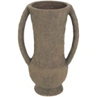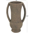 The rustic vase for home decor is handmade using stoneware, showcasing expert craftsmanship in every detail. The sandstone dark brown vase for dried flowers boasts a rounded shape and curved handles. Wipe clean with a dry cloth. The dark brown centerpiece vase is perfect for living rooms or dining tables. Designed with felt or rubber stoppers at the base that prevent scratching furniture and table tops, as well as sliding around. This item ships in 1 carton. Stoneware vase makes a great gift for any occasion. Due to the handmade nature of this item, no will be alike, there will be slight differences in shape, size, and color. Suitable for indoor use only. This item ships fully assembled in piece. This is a single dark brown colored vase. Rustic style. Vase has a 5.70 in mouth opening. RUSTIC HOME DÉCOR VASE: Designed with rugged beauty and an earthy charm, where natural simplicity, warmth, and organic materials create a wholesome atmosphere CERAMIC VASE FOR CENTERPIECE: The dark brown decorative vase is made from high-quality stoneware DARK BROWN AND BLACK VASE FOR FLOWERS: The round home decor vase features a dark brown color with a textured finish ROUND VASE FOR HOME DÉCOR: The stoneware vase boasts wide handles for easy handling and an added rustic charm LARGE SIZE FLOWER VASE CENTERPIECE: The dark brown ceramic vase measures 9.5L x 6.6W x 15.25H inches, and weighs 5.395 lbs
