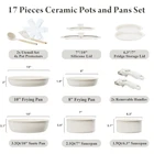 Healthy Ceramic Coating: Made of natural ceramic, our kitchen cookware set is Teflon-free and guarantees no PFAS, PTFE, PFOA, lead, or cadmium. Ideal choice for safety-conscious families, especially those with babies Effortless Storage: Save 70% kitchen space by neatly stacking pots and pans in cabinets or drawers; perfect for compact spaces, RVs and campers Innovative Detachable Handles: Transform pots with a "CLICK" into baking dishes, serving plates, or fridge storage, enhancing versatility. NOTE: The handle is made of bakelite and silicone, overheat will cause discolor or even burnt.Please detach it when you are not using it for fixing. Ultra Non-Stick Performance: Experience 5X superior non-stick cooking with minimal oil - food just slides off smoothly.No fumes emitted, even when overheated. NOTE: using oil spray will damage the coating. Just add a small amount of butter or oil will be enough.Low to medium heat is suggested for better non stick performance. Easy Cleaning: While our cookware is dishwasher-safe for your convenience, we highly recommend handwashing. A simple rinse or quick wipe effortlessly removes any residue, ensuring your cookware remains spotless and maintains its pristine condition with ease Universal Cooktop Compatibility: Enlarged, thickened magnetic base ensures compatibility with all stovetops, including induction and oven; Crafted from recyclable aluminum ensures lightweight yet sturdy, and promotes rapid and even heating 17-Piece Set Includes: 1.5QT(6.3") & 2.1QT(7") saucepans, 8-inch & 10-inch frying pans, 3.2QT(10")sauté pan, 2 removable handles, 7-inch & 10-inch glass lids, 6.3-inch & 7-inch fridge lids, 4 pot protectors, silicone slotted turner & ladle