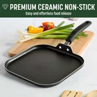 Expect professional quality and professional results with the Premium Ceramic Nonstick Cookware Set. The heavy-gauge aluminum construction and spiral base allow for even heat distribution and retention. The ceramic nonstick coating provides effortless food release and makes clean-up a breeze. Made without PFOA, PTFE or PFAS, this clean ceramic coating allows food to effortlessly slide out of the pan eliminating the need for unhealthy oils or butter.The comfort grip handles allow for a safe and secure grip while the tempered glass lids allow you to monitor food as it cooks. Best of all, it's dishwasher safe so you can spend less time cleaning and more time enjoying your culinary creations with family and friends. SET INCLUDES: 8” fry pan, 10” fry pan, 2 quart saucepan with lid, 5 quart Dutch oven with lid, 4 quart deep sauté pan with lid, 10” square griddle pan and bamboo tools. PROFESSIONAL RESULTS: Expect even heat and reliable results thanks to its heavy gauge construction and spiral heat grooves. HEALTH-MINDED COOKING: Made without PFOA, PTFE or PFAS. This clean ceramic nonstick coating allows food to effortlessly slide out of the pan eliminating the need for unhealthy oils or butter. QUALITY UPGRADES: Compatible with all stove tops including induction. Comfort grip handles ensure a safe and secure grip while the tempered glass lids allow you to monitor food as it cooks. DISHWASHER SAFE: This cookware set is as easy to clean as it is to use. The entire collection is dishwasher safe for fast and easy clean-up.