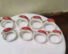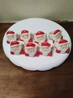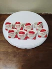 The product is a set of 8 ceramic Santa Claus napkin ring holders designed for a holiday Christmas table setting. Each napkin ring features a Santa Claus character in a multicolor design.