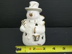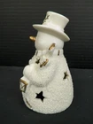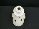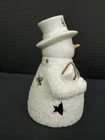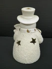 Accentuate your holiday decor with this charming ceramic snowman candle holder. Perfect for any room, it's designed to house both votive candles and tea lights, bringing a cozy, festive atmosphere to your home. The pure white color complements the cute snowman character, creating a look that's both elegant and whimsical. Crafted for those who love seasonal decoration, this unbranded candle holder is a delightful addition to your Christmas collection. Its free-standing design allows for easy placement on mantles, shelves, or tables. Whether it's illuminating your living space or adding a touch of winter cheer to a room, this piece is sure to brighten your holiday season.