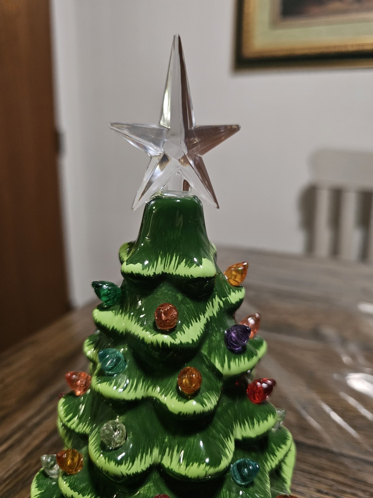 The Ceramic Tabletop Christmas Tree is a festive and charming addition to your holiday décor. Standing at 7.5 inches tall, this multicolored tree lights up to add a warm and cozy touch to your home during Christmas. Made of ceramic, this Christmas decoration is durable and easy to display on a tabletop or shelf. Perfect for adding a traditional touch to your holiday season. Battery operated. Batteries not included. No missing lights and no damage!