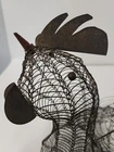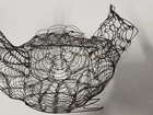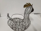Vintage French Country Wire Chicken Turkey Bird Egg Basket With Lid & Handle. Handcrafted. 11" ht, 10" Length, 6" Width.