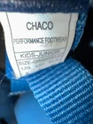 The Chaco Chillos Kids Sandals in Ocean Blue are designed for active kids in US Youth Size 5. These strappy sandals feature a synthetic upper material in a vibrant blue color, perfect for sports activities or everyday wear. With the trusted Chaco brand and comfortable M width, these sandals are both stylish and durable for children who love to be outdoors and on the move. Rarely worn, almost as good as brand new.