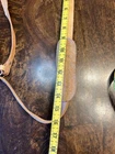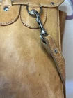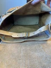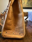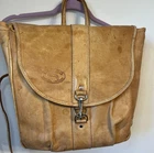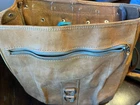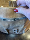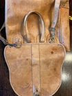 This Chaco Leather Bag from Paraguay is a vintage square-shaped saddle bag with a natural exterior color and brown leather crossbody strap. It features a zip and latch closure, outer pocket, and silver nickel hardware. Measuring 12x12x6 inches, this medium-sized bag is ideal for travel, casual outings, or workwear. With a bohemian and nature-inspired theme, this unisex bag is designed for a classic, hipster, or hippie style. Please note that the bag has spots and needs cleaning as shown in the pictures.