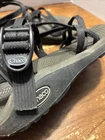 This pair of Chaco women's classic sandals features a solid black color and a strappy style with an adjustable buckle closure. The synthetic upper material and 10" length make for a comfortable fit, perfect for casual occasions such as walking. These sandals are designed to suit women of any size, with a US shoe size that is not specified. The Chaco sandals also come with a 4" width, ensuring a snug and secure fit. The brand is known for its high-quality products and this pair of sandals is no exception. Ideal for those who are always on the go, these sandals are a must-have for any wardrobe. Measures 10L by 4” W International charges are the buyer’s responsibility. No international returns.