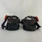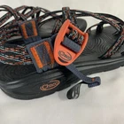 Take your outdoor adventures to the next level with these Chaco Women’s Sz 8 Toe Ring Sandals. Perfect for any casual or active occasion, these multicolor sandals are adorned with beautiful embroidered logos and have a slip-on closure for easy wear. The durable rubber outsole provides excellent traction on any terrain, while the adjustable straps ensure a comfortable fit for all-day wear. Whether you're hiking, walking, or simply enjoying the summer sunshine, these Chaco sandals have got you covered. The nylon upper material is both lightweight and sturdy, ensuring that these sandals will be a long-lasting addition to your outdoor wardrobe. The flat heel style and standard shoe width make them perfect for everyday wear, while the nature and outdoor theme inspire a love of the outdoors. See photos for details and condition.