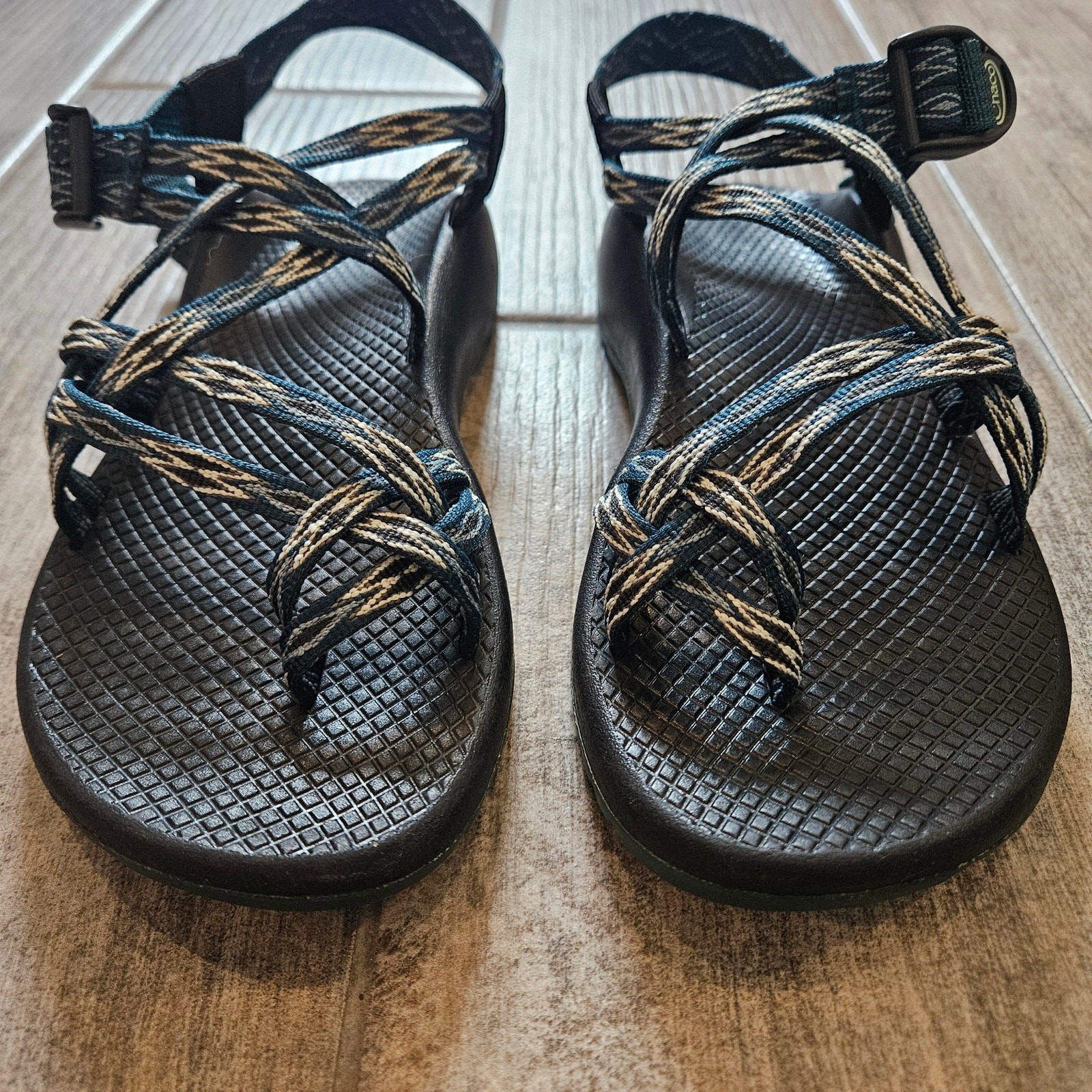 Chaco ZX/2 Classic Sandals Women’s 8 Dual Strap Blue Adjustable Hiking Shoe Description: Chaco ZX/2 Classic Sandals in women’s size 8. Dual adjustable polyester straps with toe loop, contoured LUVSEAT PU footbed, and durable ChacoGrip rubber outsole for exceptional traction and comfort. Built for adventure and designed to last — ideal for hiking, travel, or everyday wear. Measurements are included in the photos. Excellent pre-owned condition with minimal wear. Condition: Excellent pre-owned — light sole wear only, straps and footbeds clean. Keywords: Outdoors, Adventure, Hiking, Trail, Utility Chic, Workwear, Mountain Core, Functional Fashion, Performance Gear, Minimalist, Timeless, Quiet Luxury, Sustainable Fashion, Circular Fashion, Affordable Affluence, Summer, Spring, Travel Ready, Active Lifestyle, Everyday Style, Weekend Wear, Modern Utility, Eco Friendly