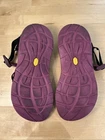 Chaco ZX/2 Classic Outdoor Sport Sandals Camper Purple Toe Loop Womens Size 9 Experience the perfect blend of comfort and style with the Chaco ZX/2 Classic Outdoor Sport Sandals in a vibrant Camper Purple shade. Designed for women who love to embrace both the outdoors and fashion, these size 9 sandals feature an adjustable strap for a custom fit and a secure buckle closure to keep your feet in place all day long. Crafted with a durable synthetic upper and a rubber outsole, these hiking sandals are built to handle any adventure. The flat heel ensures a comfortable stride, while the toe loop accent adds a touch of sophistication to your activewear or casual ensemble. Whether you're hitting the trails or the city streets, these sandals are your go-to for a classic look with a modern twist. Pre-owned. See photos for condition details. To upcycle, I reuse shipping material as often as possible. Buy more from my store and save on shipping.