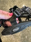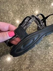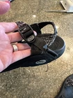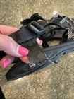Part of one strap has come loose on right foot in back (pictured)