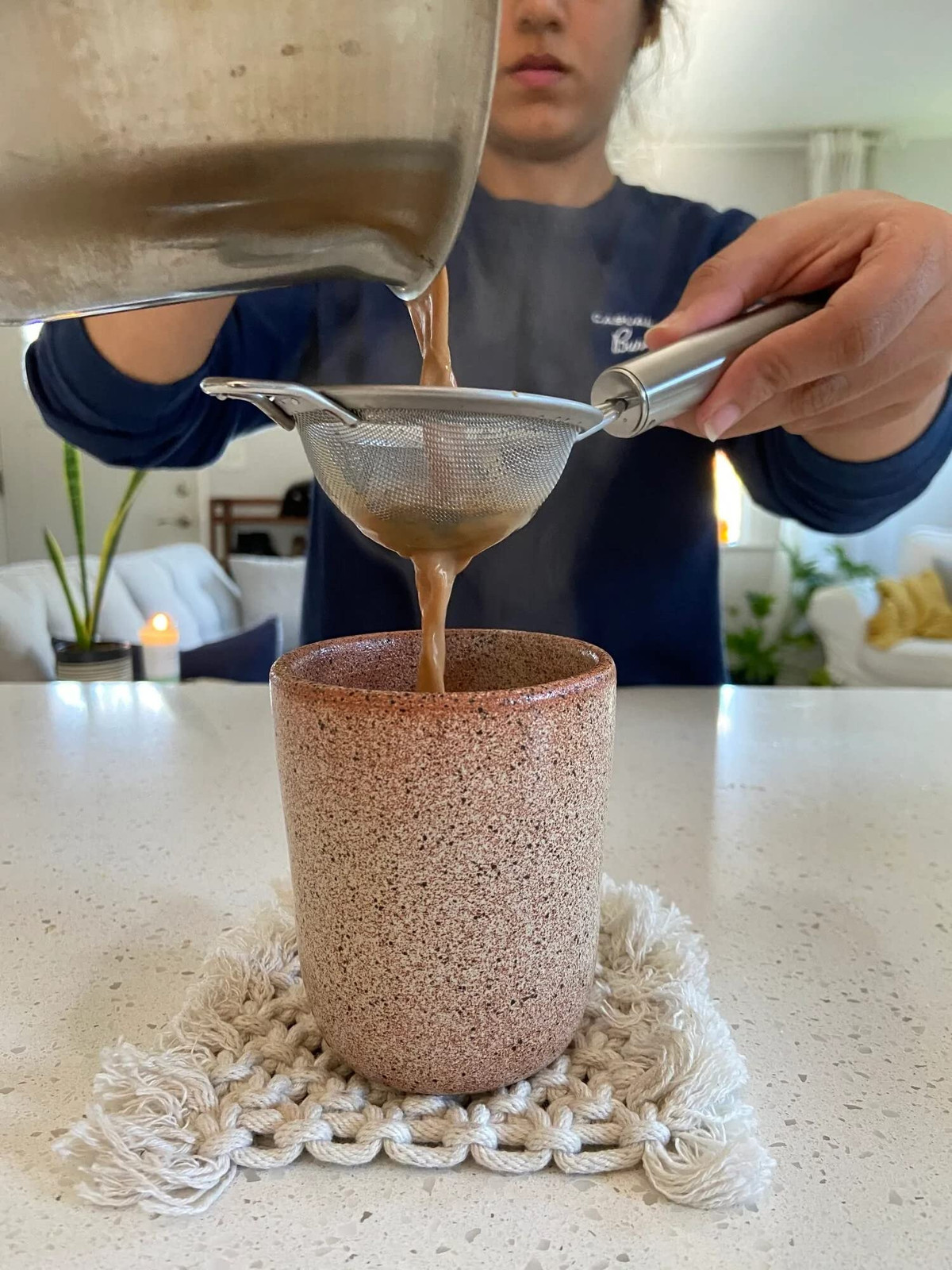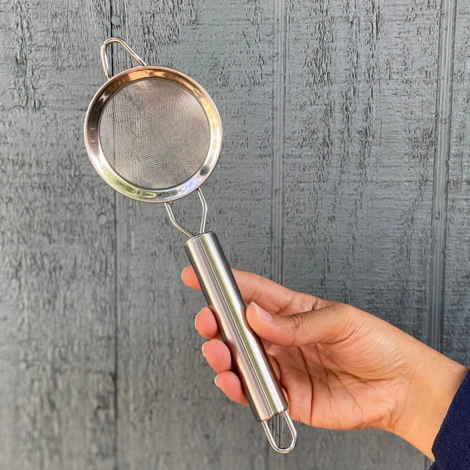 ACCESSORIES THAT PAIR WELL WITH OUR CHAI TEA: Our Chai Strainer is a handy little tool that will change your afternoon tea game. You can filter coffee grounds, strain tea leaves, strain juice, etc. It is a multipurpose strainer that is perfect to pair with your chai tea. MORE THAN YOUR AVERAGE TEA STRAINER: The chai strainer strains your chai teas without worrying about the mess. A fine mesh strainer that catches all the smaller grounds. This chai strainer is designed with a conical shape net that strains beverages quickly and efficiently while preventing spillage all over your countertop. EASY TO STORE & DISHWASHER SAFE: Strain your chai easily with this Chai Strainer, which hangs for convenient and compact storage in your kitchen. Made of a sturdy yet flexible stainless steel mesh and dishwasher safe, this tea strainer is beautiful and functional in any kitchen! It's flexible, easy to store, and even easier to clean. MADE FROM PREMIUM STAINLESS STEEL: Our Chai Strainer is made of strong stainless steel, which provides a sturdy base for straining coffee and chai tea. The fine mesh removes smaller pieces to allow liquids to drip through the strainer while keeping the grounds out of your cup! THE PERFECT GIFT: Got a chai lover in your life? Our Chai Strainer is the perfect gift. It makes an excellent gift for anyone who loves to make their delicious chai at home— we recommend pairing with one of our signature chai blends!