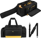 Chainsaw Carrying Case, Waterproof Foldable Chainsaw Storage Bag Compatible with Greenworks, Dewalt, EGO Power+ 14''/16''/18'' Chainsaws and Cordless Chainsaw, Black&Yellow About The Item: Compatible Models: The chainsaw carrying bag fits for Greenworks/ Dewalt/Makita/ Milwaukee M18 FUEL/ Stihl/EGO Power+14’’, 16’’ & 18" cordless chainsaws and accessories. Please measure and know the exact size of your chainsaw before purchasing Foldable Design: The back of chainsaw case comes with a velcro, which can be folded when you are not using the chainsaw, it is not take up any space, can be used as an ordinary carrying bag. Waterproof Material: The chainsaw bag is made of premium fabric with encrypted stitching, has excellent wear resistance, scratch resistance and water resistance. The extra sturdy PE foam bottom base provides firm structure and high bearing capacity Multi-Pockets: The big compartment has an inner pocket for battery storage, and a fastener strap for securing the chainsaw. The front pocket has 2 elastic-top pockets and 4 elastic straps. The 2 side pockets can store the batteries, tools, gloves. Easy to Carry: The chainsaw bag features a detachable shoulder strap to reduce stress for your shoulder, and cushioned handle ensures you to carry this electric chainsaw bag comfortable. And the non-slip feet at the bottom will keep stability