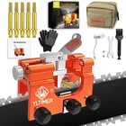 【Innovative Design Chainsaw Sharpener】Experience the versatility of our chain saw sharpener tool, which is compatible with chains of various sizes. Our chain saw sharpener features two fixed sharpening holes and a standard 30° sharpening angle. It is equipped with anodized aluminum clamps, making it suitable for use with electric chain sharpeners. The chain saw blade sharpener is compatible with a wide range of chainsaw sizes, including 4-22 inch chainsaws and electric chainsaws. 【Upgraded Sharpener Diamond Burs】 Our chainsaw chain sharpening jig kit has new design based on the old version, the position of the sharpening burrs fixed on the crank can be adjusted to make full use of the burrs. There are two different directions guide holes, which can improve the accuracy of the cutting angle. It comes with 5 grinding burrs, allowing you to replace them at any time. 【USER-FRIENDLY & EFFECTIVE CHAIN SHARPENER TOOL】Our universal Chainsaw Sharpener kit is as simple to use as a pencil sharpener. Just attach the clip to the rod, position the pawl over the teeth, insert the burr into the guide bush, and turn the handle. It only takes 3-5 seconds to sharpen the chainsaw. Experience the quick, easy, and precise way to sharpen your chainsaw, restoring it to its original efficiency. 【SECURE & PORTABLE CHAIN SHARPENING JIG】Designed with safety in mind, our hand-cranked chainsaw sharpener kit is lightweight and comes with a convenient storage bag, making it easy to carry and use outdoors. Additionally, each box includes a spare pair of gloves to protect your hands from potential harm. We also provide a cleaning brush to remove sawdust from chainsaws and debris from the chainsaw sharpener, effectively prolonging the lifespan of the chain. 【THE ULTIMATE CHOICE】Choose our Chain Saw Sharpening Jig set to maintain the sharpness of your chainsaw, saving you valuable time and effort on the job. With its beautifully packaged design, it also makes the perfect gift for any man and is an essential tool for lumberjacks and landscapers alike. We guarantee the quality of every chainsaw sharpener and provide friendly customer service.