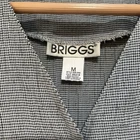Vintage Briggs Womens Vest M Black White Woven Button Front Teachercore 80s This vintage Briggs women's vest is a unique addition to any wardrobe. The black and white houndstooth pattern gives it a classic, yet bohemian feel. The sleeveless design and lightweight fabric make it perfect for all seasons, whether you're teaching in the classroom or enjoying a casual day out. The button front closure and woven fabric type add to its preppy and cottage-like style, while the accents a touch of academia and coastal grandma vibe. This vest is a regular fit, size M, and made of rayon and acetate materials. It's perfect for anyone who loves the 80s fashion and wants to add a touch of vintage to their wardrobe.