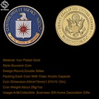 Detail: Material: Gold Plated Design: Coin Round, Double-sided Pattern Theme: Central Intelligence Agency Coin Size: 1.57“*0.12”/40mm* 3mm Product Usage: Home Office Decoration, Business And Holiday gifts, Commemorating Natural Crafts Collection Include: 1*Coin1*Plastic Case