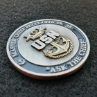 Navy Master Chief Challenge Coin Specifications: · Composition: Metal Alloy / Antique Silver Finish · Diameter: 40mm (1-9/16") · Thickness: 3mm · Weight: ±30g · Comes in removable clear case ENGRAVING AVAILABLE for an additional $21.95. Note: Coins without engraving ship next business day. Coins with engraving take up to 5 days to ship. Challenge Coin Engraving Option | eBay We take it to our engraver. Avoid the risk of your engraver messing up and having to purchase a new coin ( We do not take returns on buyer engraved coins ). If our engraver messes up, it's on us and we give him another coin to do (This has happened). Send us your engraving details but please note, engraving space is limited and the more letters, the smaller the font. We will make a recommendation if we feel there are too many characters. Please monitor your messages/emails. We have many other coins, creeds and personalized military wall art listed including, Special Forces, Ranger, Airborne, Infantry, etc. Check our store listings.