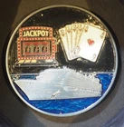 The challenge coin is an original item from the Royal Caribbean Degenerate Gamblers (RCDG) group in the United States. As a collectible piece, this token embodies the camaraderie and solidarity within the group through a shared symbol. The coin likely holds sentimental value to members of the RCDG, serving as a tangible reminder of their experiences and connections. Its authenticity as an original piece further enhances its value and appeal to collectors of challenge coins. Bar.60.765